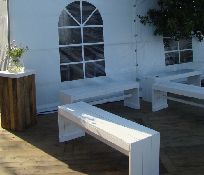 Steigerhout is een van de grotere meubilairtrends van de laatste jaren. Deze bank kan zowel binnen als buiten staan. De bank is groot genoeg voor drie personen. Dit bankstel wordt geleverd zonder kussens, deze zijn tegen een meerprijs verkrijgbaar. Om gewicht te besparen is dit product gemaakt van sloophout.