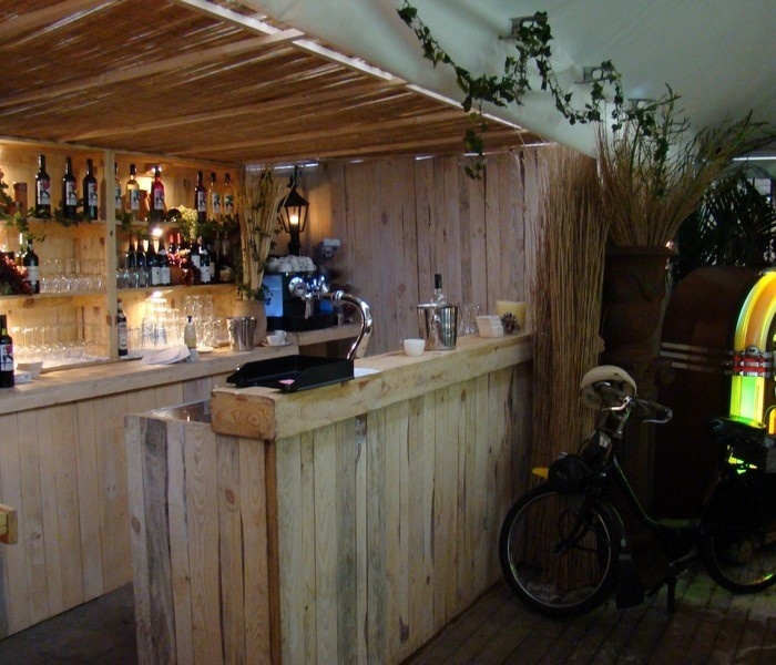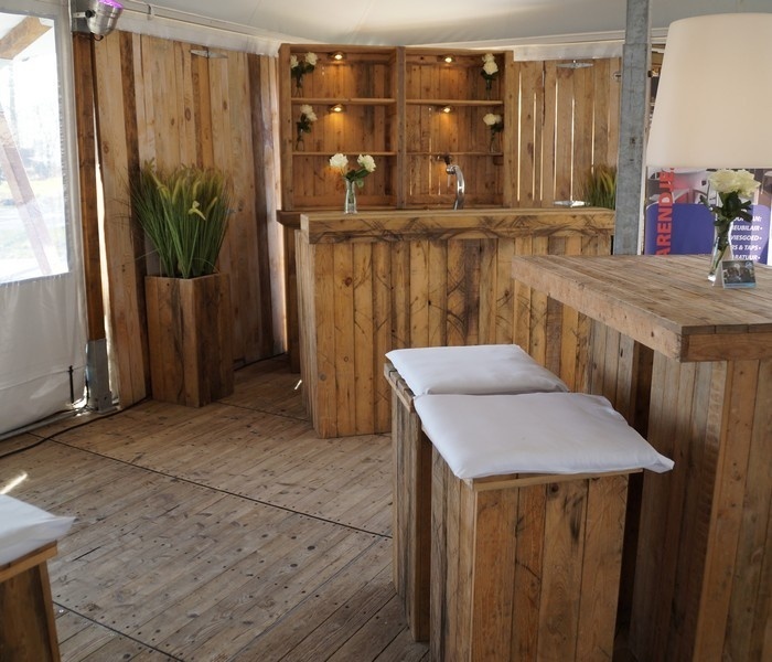 Deze steigerhouten bar is inclusief de opstaande rand.