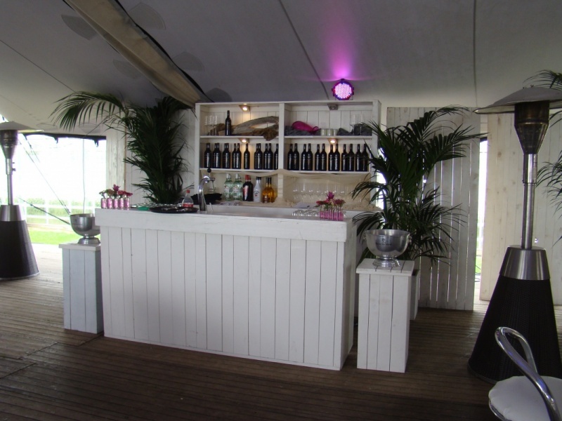 Deze steigerhouten bar wit is inclusief de opstaande rand.