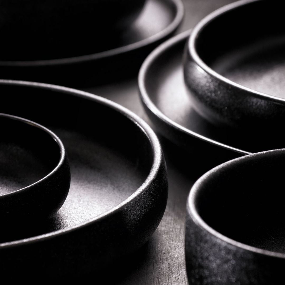 Een stijlvolle tafelsetting krijg je met deze porseleinen serie met mat zwarte kleur en ruwe afwerking. De ronde vormen en hoge rand zorgen voor een speelse twist. Deze serie is goed te combineren met de serie Cosmos. Na gebruik kan het bord gereinigd worden in de vaatwasmachine. Het bord heeft een diameter van 19 cm.