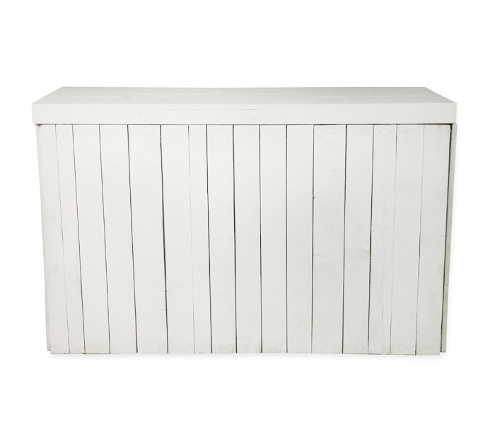 Steigerhout is één van de grotere meubilairtrends van de laatste jaren. De buffettafel kan zowel binnen als buiten staan. Deze witte steigerhouten buffettafel maakt jouw lopend buffet compleet en bevorderd de unieke sfeer tijdens het diner. Deze tafel bestaat uit een ombouw met een los blad en is demontabel en inklapbaar. Om gewicht te besparen is dit product gemaakt van sloophout.