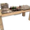Deze steigerhouten drankentafel is compleet met lekbladen, spoelbak met spoelborstel, opener, bierviltjes en twee bakken waarin je met ijsklontjes je drank kunt koelen. Hij wordt geleverd zonder drank, glazen en ijsklontjes. Deze drankentafel is demontabel, de poten zijn te monteren door middel van vleugelmoeren. Om gewicht te besparen is dit product gemaakt van sloophout.