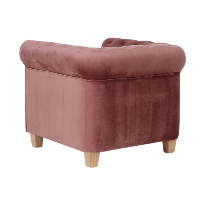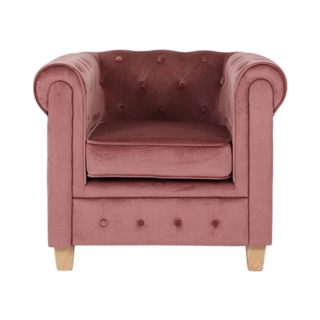 Deze Malibu velours oud roze fauteuil heeft een zeer karaktervolle en zachte uitstraling. Deze fauteuil kan je ook huren met onze Malibu velours fauteuil. Hij is in verschillende kleuren te huur.