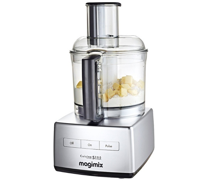 De welbekende Magimix is een onmisbare hulp in de keuken. Hij is voorzien van een extra grote toevoergoot. Hiermee kunnen hele of grote stukken groenten en fruit in plakjes of staafjes worden gesneden of geraspt. De Magimix wordt standaard geleverd met roestvrijstalen garde, platte mengarm, deeghaak en roestvrijstalen mengkom, welke is voorzien van een professioneel liftsysteem. Tevens krijgt u zes bijbehorende messen bijgeleverd.