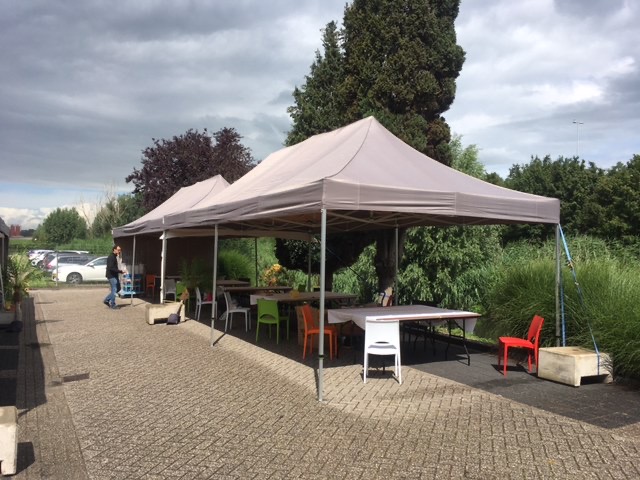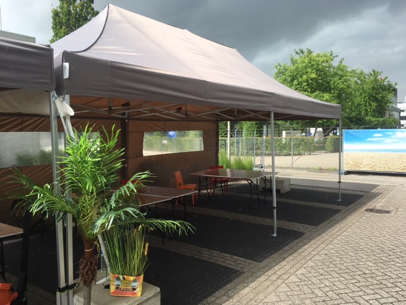 Dit handig formaat van vouwtent is makkelijk en snel te installeren. De scharnierelementen in het dak vouwen soepel en compact in elkaar. Deze vouwtent zet je binnen de minuut op, zodat je de perfecte schaduwrijke omgeving om te kunnen buiten eten. Een plooitent op uw terras is ideaal om de zomer zorgeloos buiten te beleven. De tent wordt geleverd inclusief zijzeilen.
