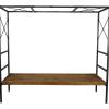 Steigerhout is een van de grotere meubilairtrends van de laatste jaren. Deze industriële salontafel bestaat uit een houten blad en een metalen frame. De tafel is gemaakt van sloophout, om gewicht te besparen. Hij kan zowel binnen als buiten staan. Het blad is demontabel.