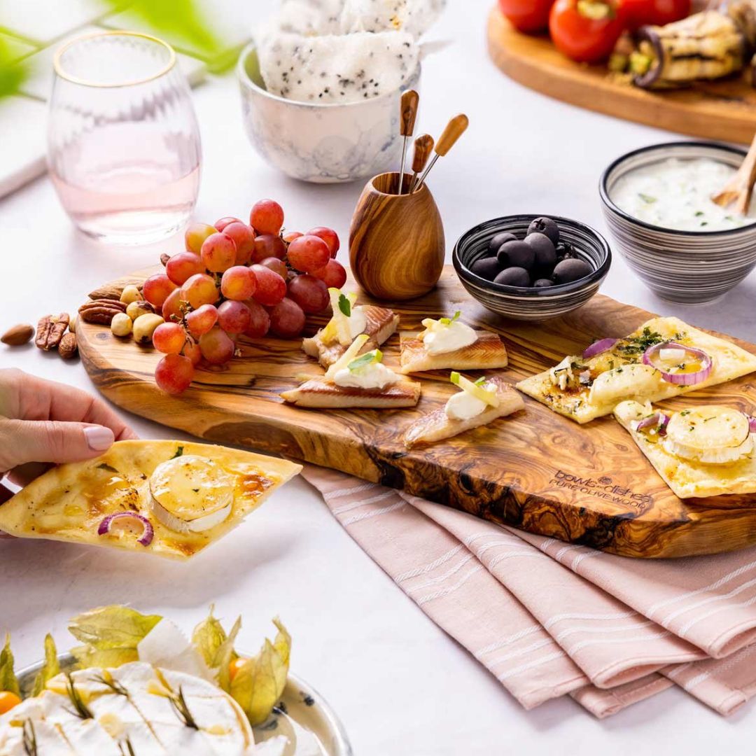 Elke olijfhouten borrelplank uit de Pure Olive Wood serie van Bowls and Dishes heeft zijn eigen natuurlijke vorm en tekening en is daarmee altijd een uniek exemplaar. De borrelplank is te gebruiken voor het serveren van kaasjes, borrelhappen, brood, antipasti, desserts, of wat je verder maar wilt.