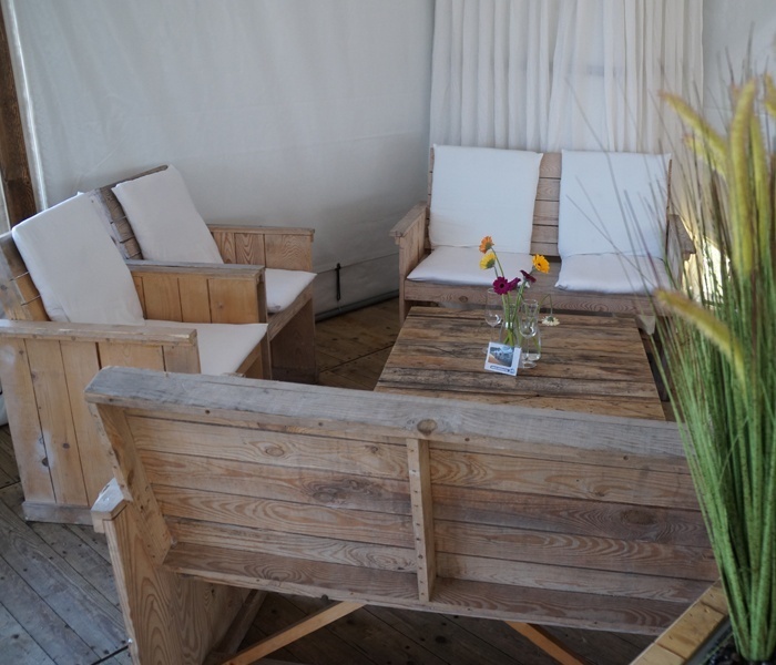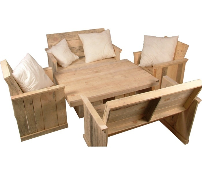 Deze steigerhout deluxe set bestaat uit 2 fauteuils, 2 banken met rugleuning, salontafel en 10 witte kussens. De kussens zijn verkrijgbaar in verschillende kleuren, zodat de inrichting naar jouw smaak gemaakt kan worden. Let op: deze set wordt geleverd met slimline kussens. Om gewicht te besparen is dit product gemaakt van sloophout. Let op: Het geleverde product wijkt af van de getoonde afbeelding.