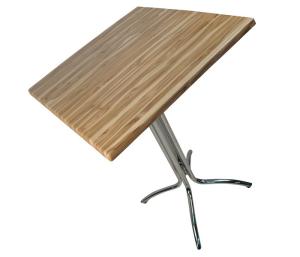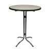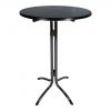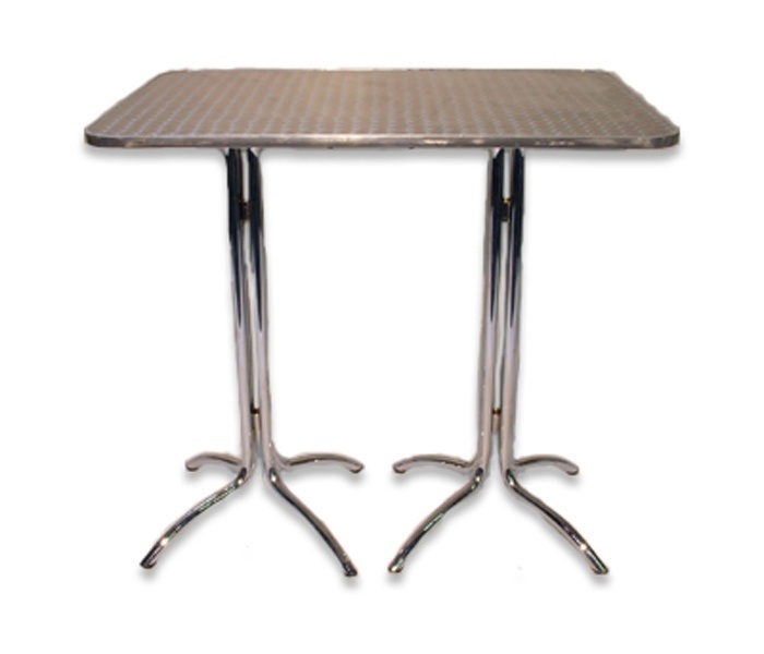 Deze aluminium statafel is demontabel en de poten zijn inklapbaar. Om wiebelen op een ongelijke ondergrond te voorkomen zijn de poten voorzien van stelschroeven.