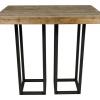 Steigerhout is een van de grotere meubilairtrends van de laatste jaren. Deze statafel bestaat uit een houten blad en een metalen frame. De tafel is gemaakt van sloophout, om gewicht te besparen. Hij kan zowel binnen als buiten staan. Het blad is demontabel.
