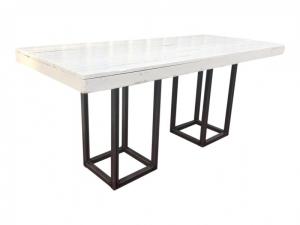 Steigerhout is een van de grotere meubilairtrends van de laatste jaren. Deze statafel bestaat uit een houten blad en een metalen frame. De tafel is gemaakt van sloophout, om gewicht te besparen. Hij kan zowel binnen als buiten staan. Het blad is demontabel.