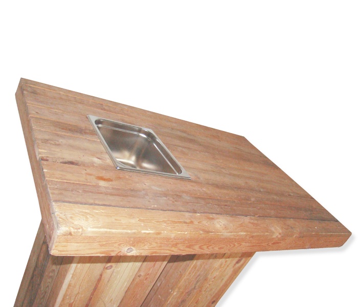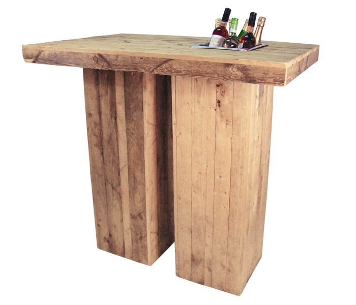 Deze steigerhouten statafel heeft een bak waarin je met ijsklontjes flessen drank kunt koelen. Dit product wordt geleverd zonder ijsklontjes en drank. De statafel is demontabel. Om gewicht te besparen is dit product gemaakt van sloophout.