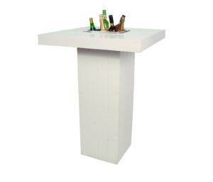 Deze statafel steigerhout heeft in het midden een bak waarin je met ijsklontjes flessen drank kunt koelen. Dit product wordt geleverd zonder ijsklontjes en drank. De statafel is demontabel. Om gewicht te besparen is dit product gemaakt van sloophout.