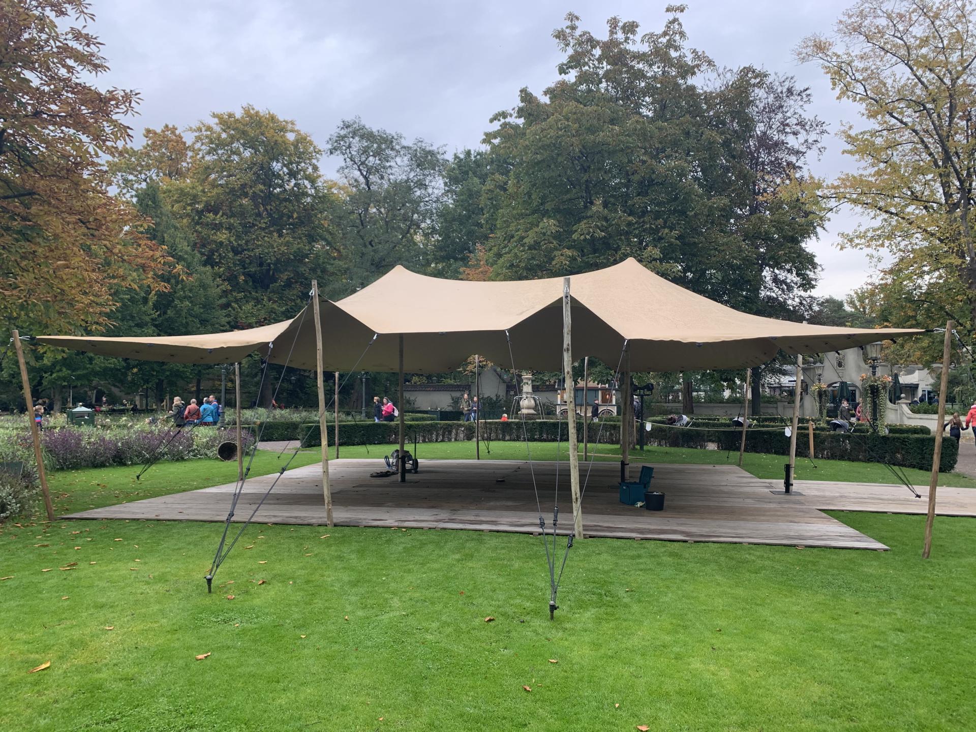 Wij zorgen voor de opbouw en afbouw van de tent. Bij het aanvragen van de tent, houd rekening met een extra benodigde ruimte van 3 meter rondom de tent.