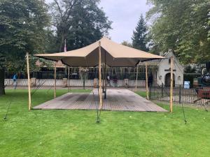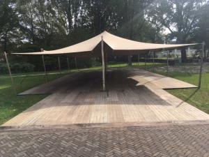 Wij zorgen voor de opbouw en afbouw van de tent. Bij het aanvragen van de tent, houd rekening met een extra benodigde ruimte van 3 meter rondom de tent.
