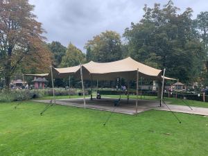 Wij zorgen voor de opbouw en afbouw van de tent. Bij het aanvragen van de tent, houd rekening met een extra benodigde ruimte van 3 meter rondom de tent.