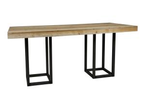 Deze industriële tafel heeft een witgekleurd houten blad.