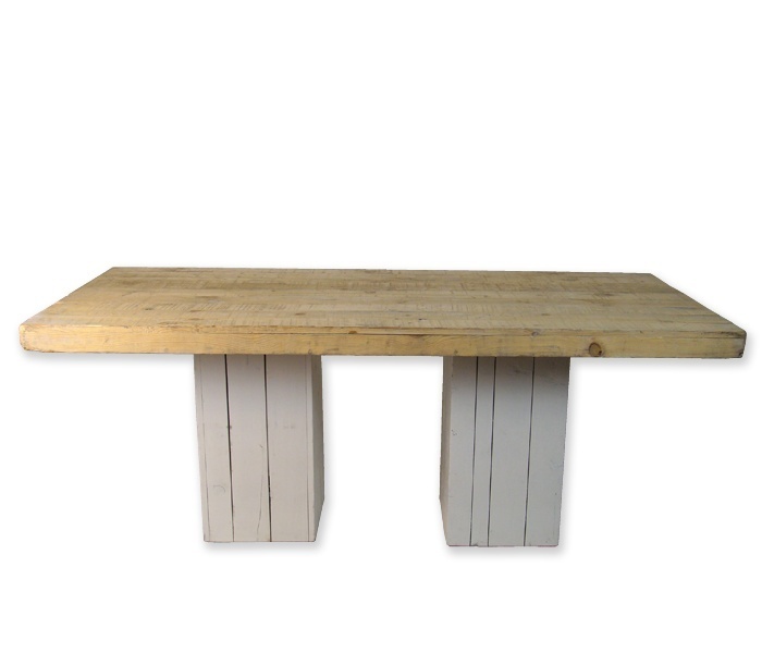 Steigerhout is een van de grotere meubilairtrends van de laatste jaren. Mixed Wood is een combinatie van steigerhout en wit steigerhout. Dit zorgt voor een frisse indruk en creëert een rustige sfeer. Deze tafels kunnen zowel binnen als buiten staan en creëren een unieke sfeer tijdens bijvoorbeeld een tuinfeest. Om gewicht te besparen is dit product gemaakt van sloophout.