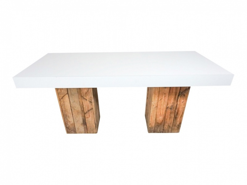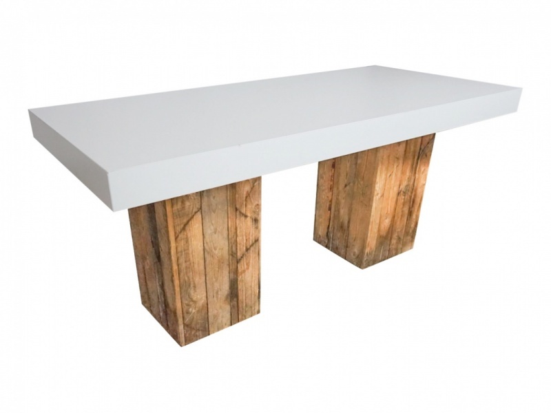 Steigerhout is een van de grotere meubilairtrends van de laatste jaren. De tafel is uniek door het steigerhout in combinatie met het chique Milano blad. Het onderstel van de tafel is gemaakt van sloophout om op die manier gewicht te besparen.