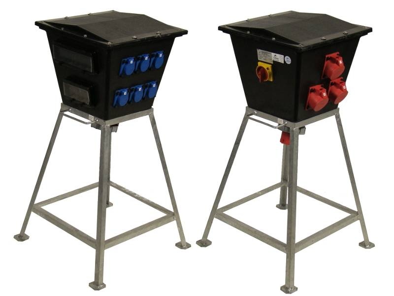 Verdeelkats 63 Ampere, 5-polig, doorlus mogelijk. Aansluitingen: 3 x 32A 5P + 3 x 16A/230V (6 contacten).