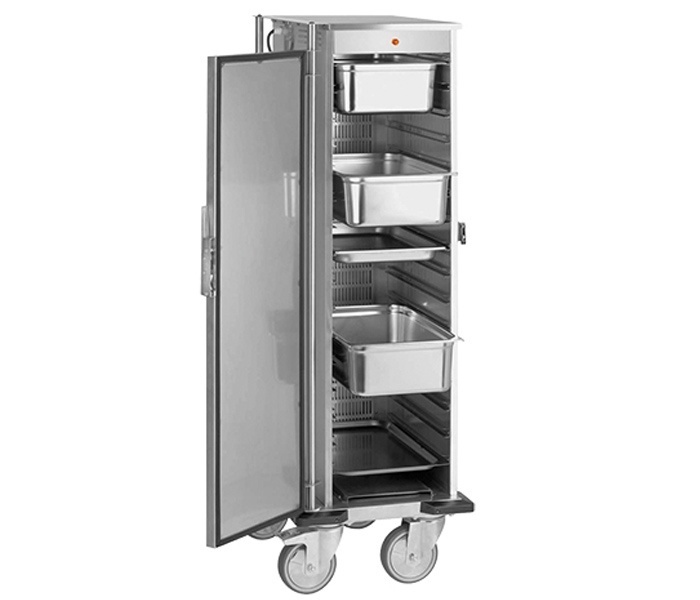 Deze warmhoudwagen is enkel geschikt voor het warmhouden van bereide maaltijden en niet geschikt voor regeneratie. Wordt standaard geleverd zonder Gastronormbakken, deze dient u apart te bestellen.