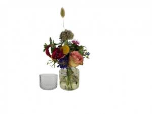 Combineer bloemen met decoratieve vazen en kaarslicht voor een warme sfeer. Kijk naar de doorzichtige vaas met waxinelichthouder voor een subtiele, sfeervolle touch. - LED-waxinelichtjes